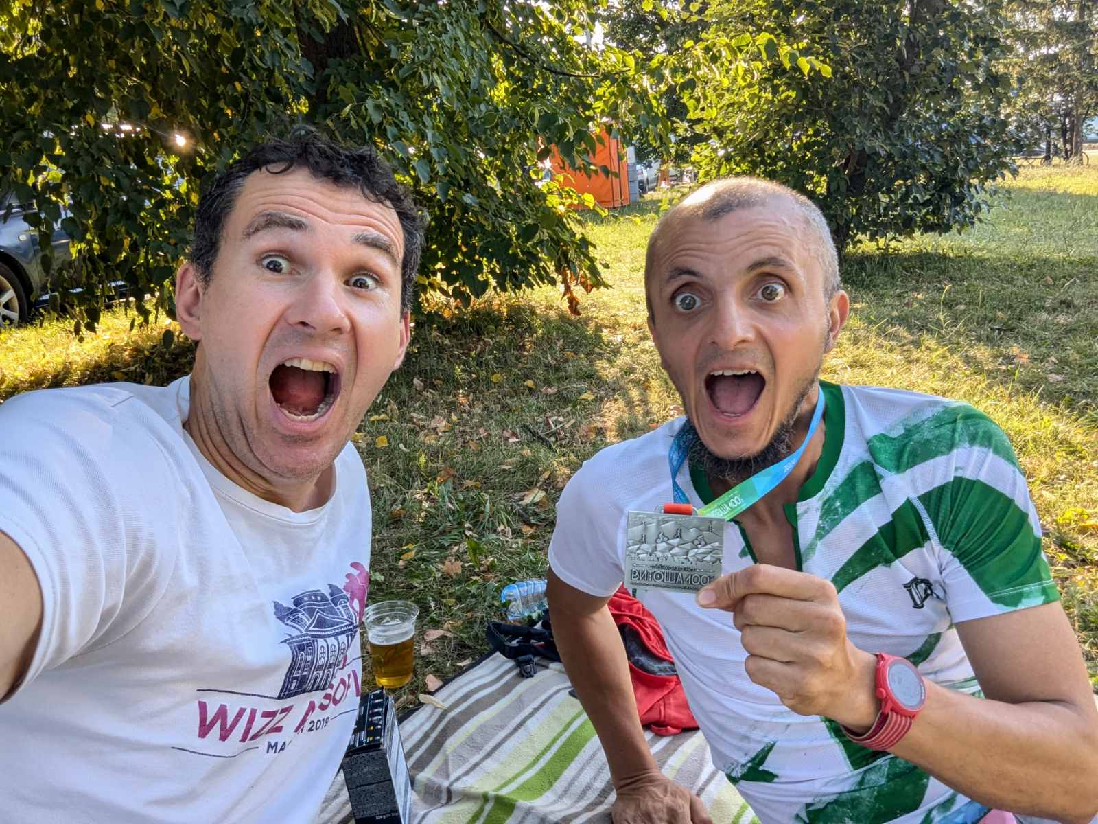 На първо място, огромна благодарност на Иван за безценната подкрепа, особено по време на състезанието – сандвичи, електролити (точно навреме), резервен багаж, вода, музикален съпорт и супер мотивиращо бягане и съвети. Благодаря и за всички тренировки, които споделихме заедно, много често уговорката ни ме организираше да не взема да кръшна. Благодаря на него и на Сави за чудесният плакат на финала!